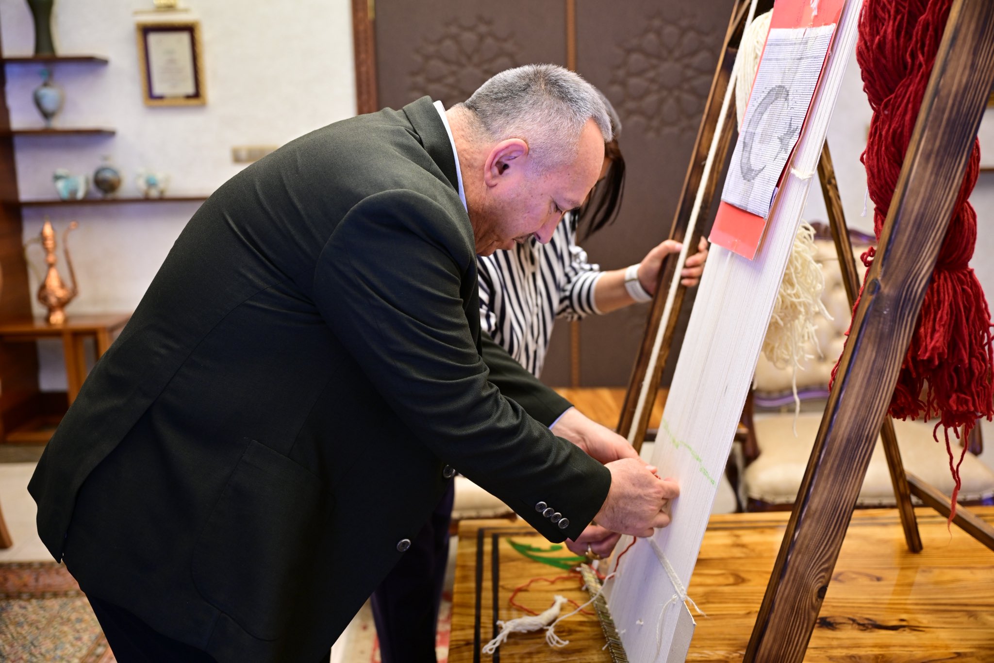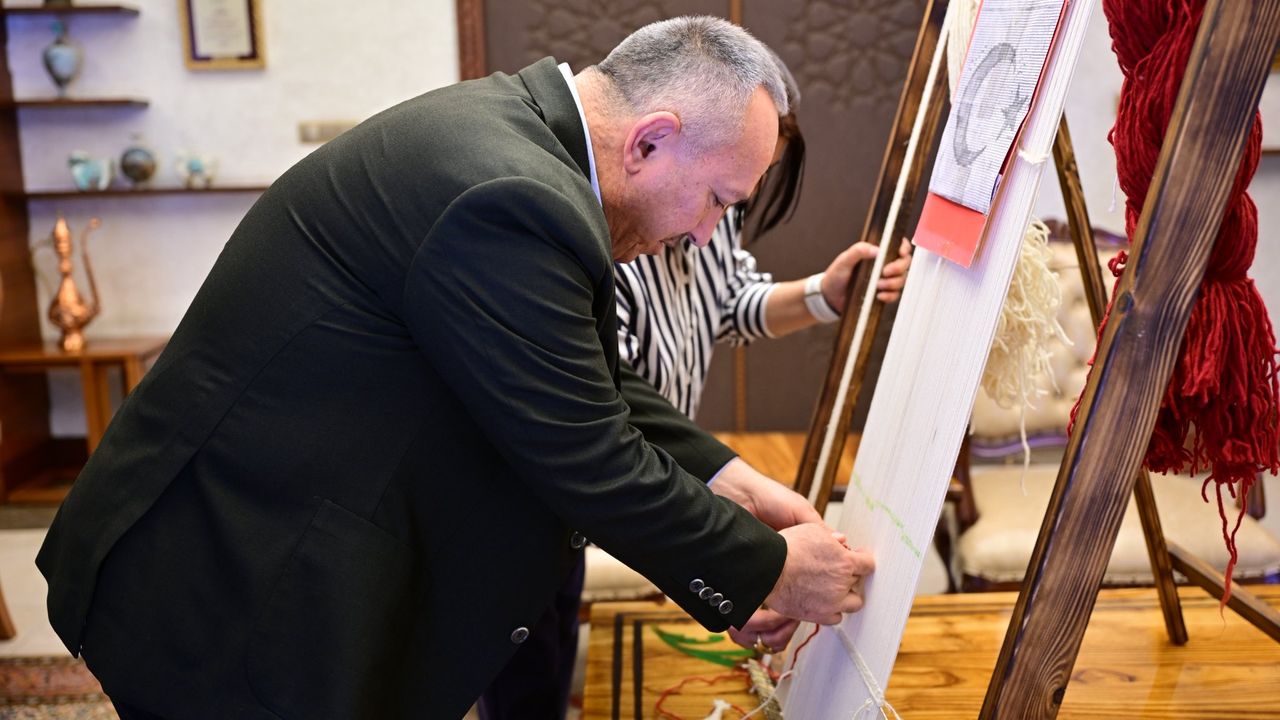 Vali Ali Fidan, çalışmaya kendi ilmeğini atarak başladı. Projede farklı kesimlerden toplam 1001 kişi, bayrağın dokunmasına katkı sağlayacak.