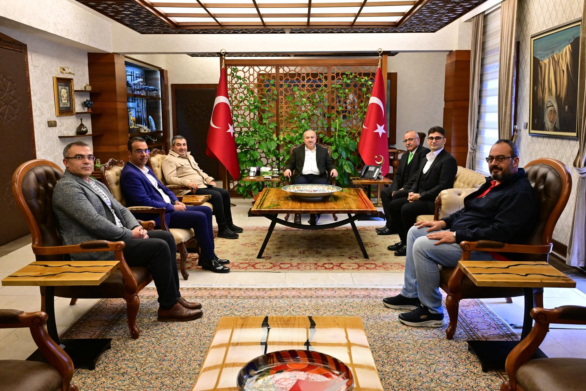 Nevşehir Valisi Ali Fidan, Nevşehir Muhtarlar Derneği Başkanı Hüseyin Altınışık ve dernek yönetim kurulu üyelerini makamında kabul etti.