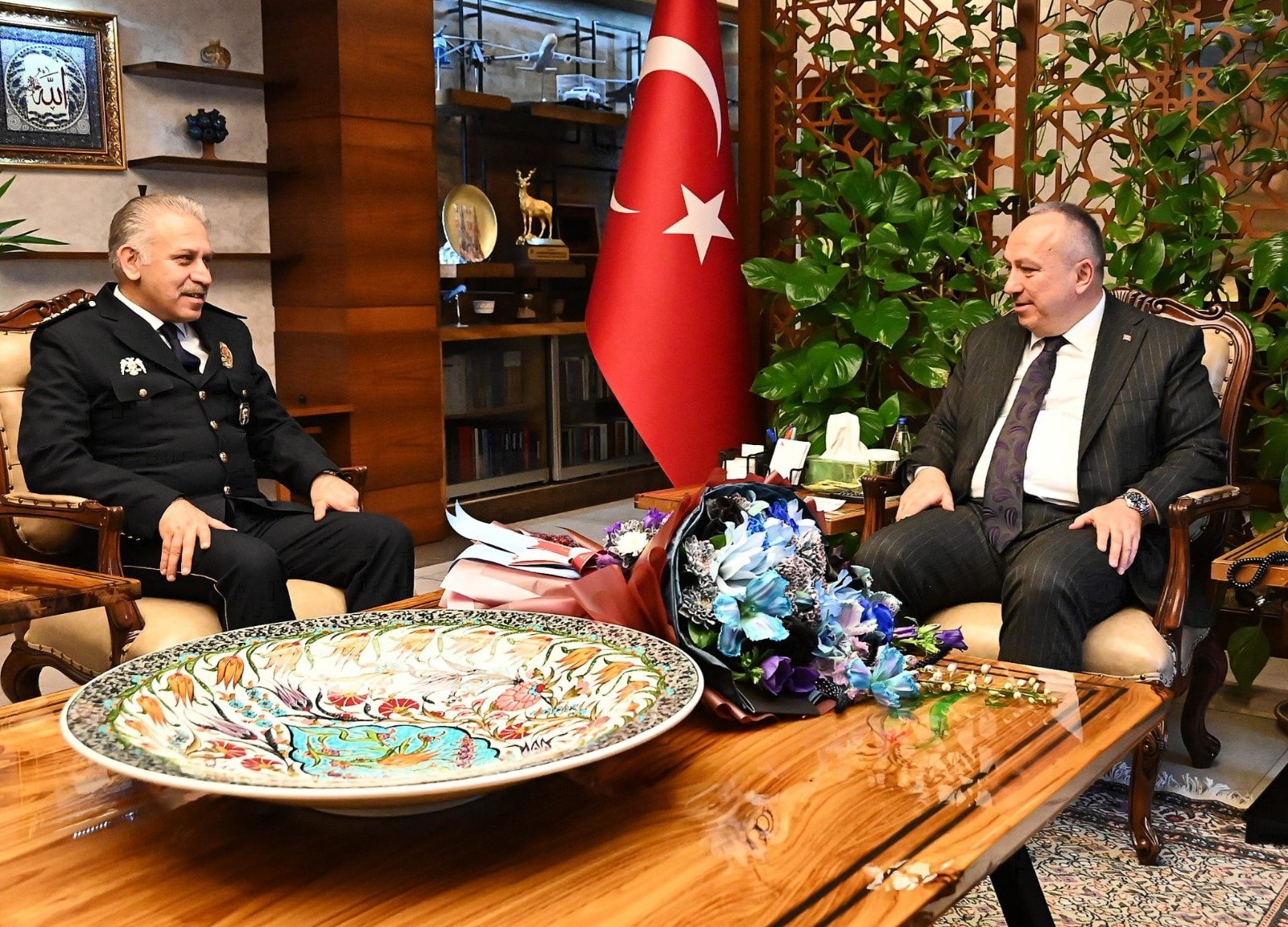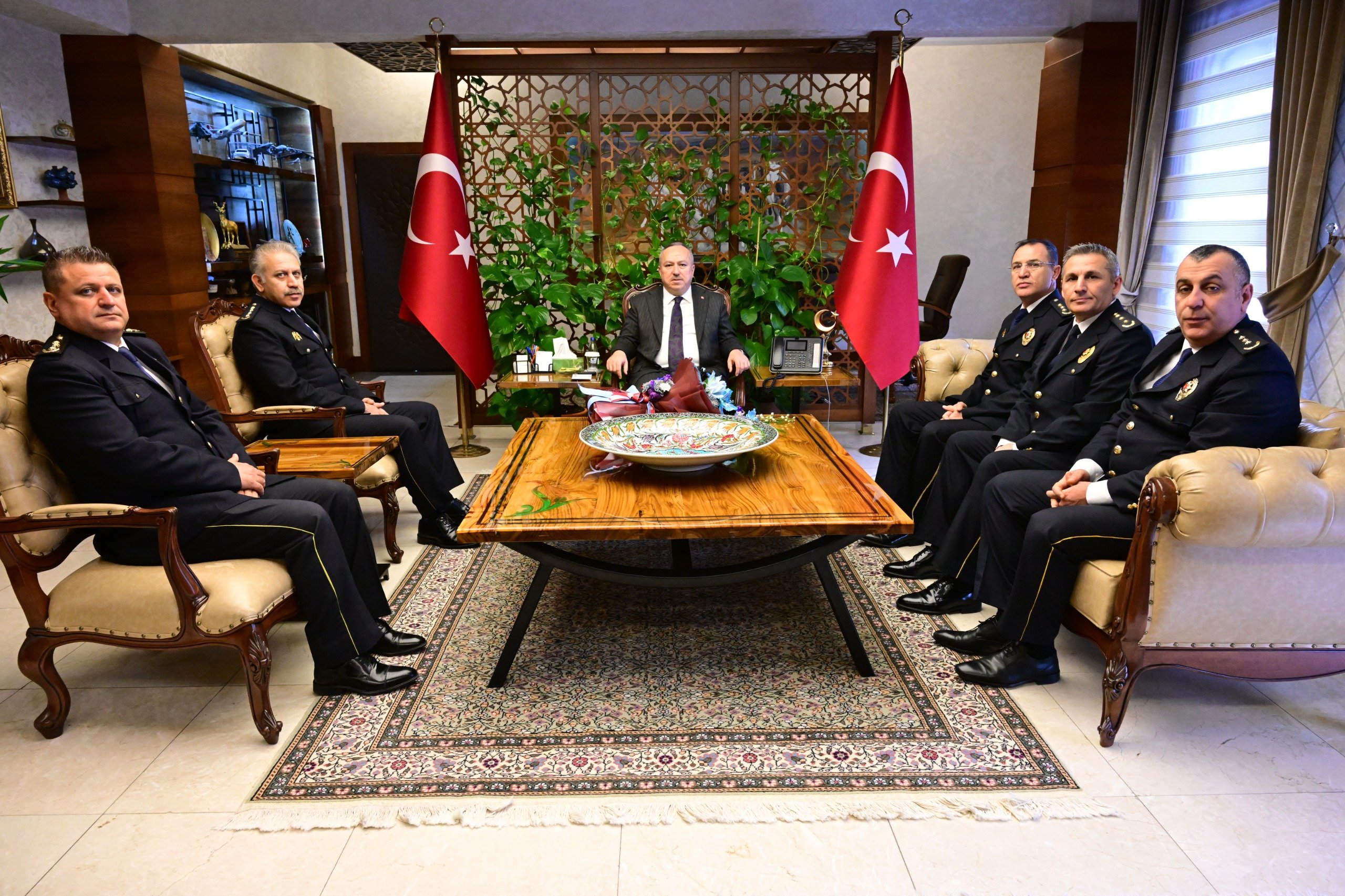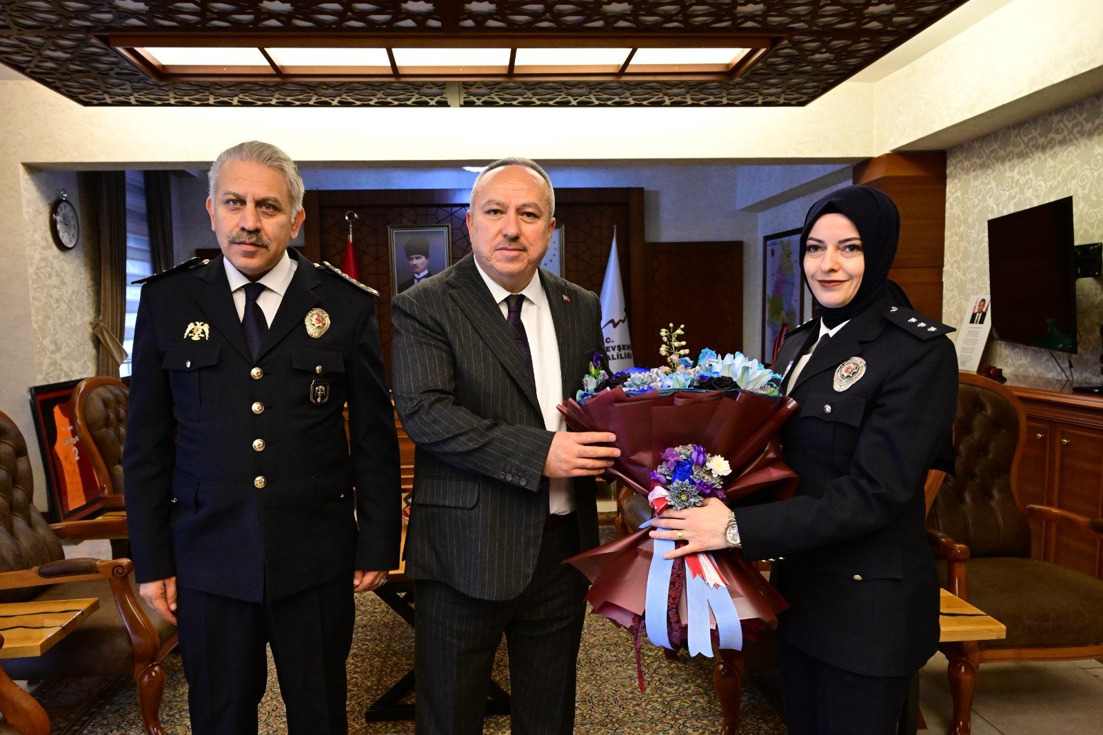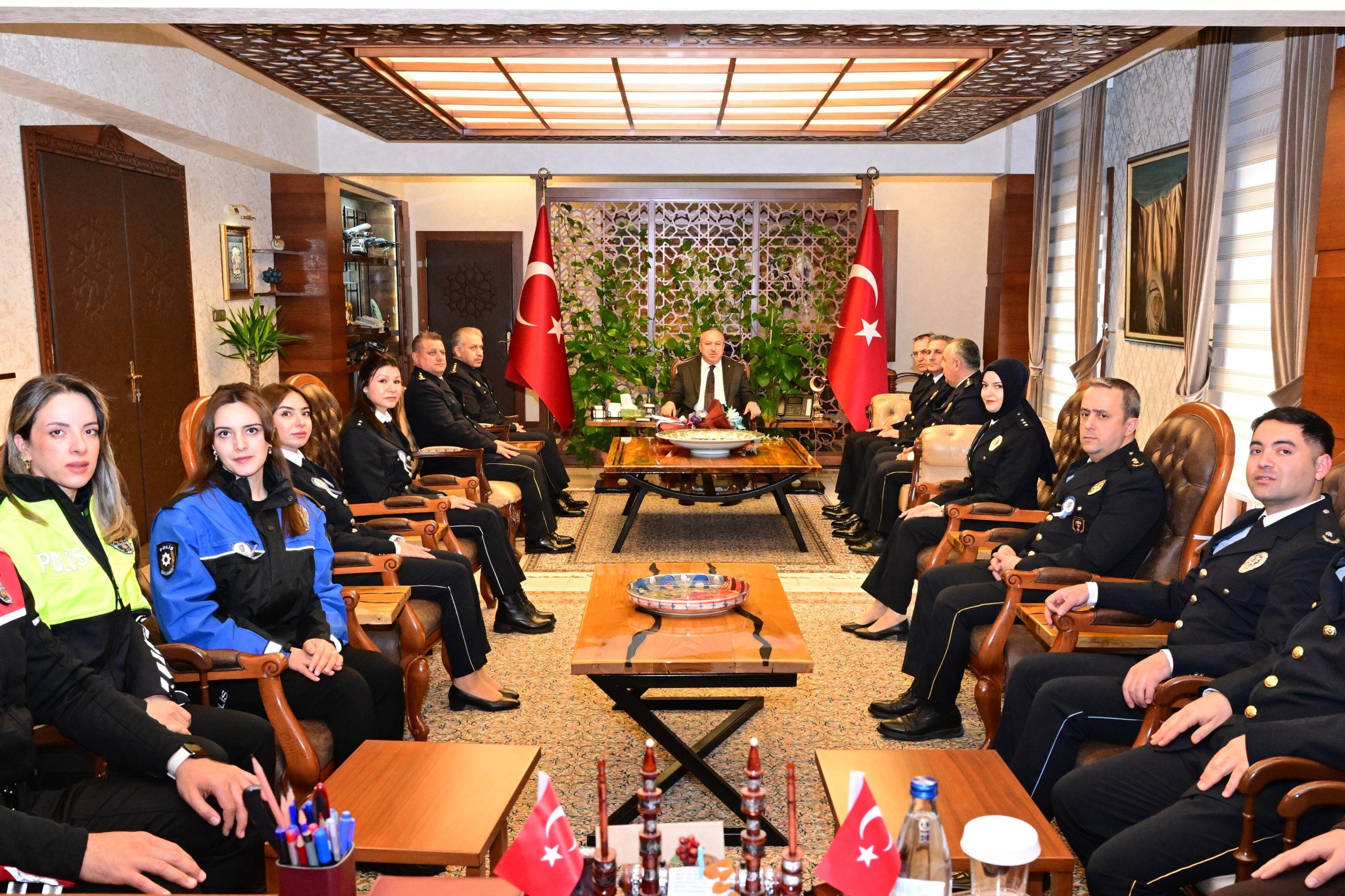 Türk Polis Teşkilatının 181’inci kuruluş yıl dönümü ve 10 Nisan Polis Haftası kapsamında İl Emniyet Müdürü Serkan Karaman ve beraberindeki Nevşehir İl Emniyet Müdürlüğü personeli, Vali Ali Fidan’ı makamında ziyaret etti.