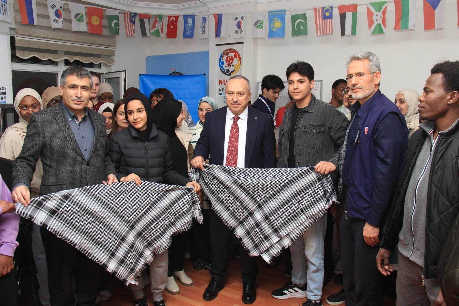 Uluslararası öğrenciler ise Türkiye'de ve Nevşehir'de bulunmaktan memnun olduklarını belirterek huzurlu ve güvenli bir ortamda eğitimlerini sürdürdüklerini ifade ettiler. Daha sonra Filistinli öğrenciler Vali Fidan ve Rektör Aktekin’e günün anlam ve önemine binaen Filistin keyfiyesi hediye ettiler.