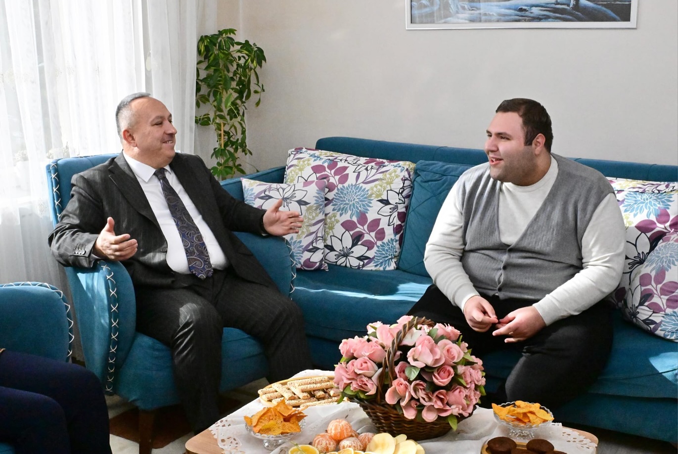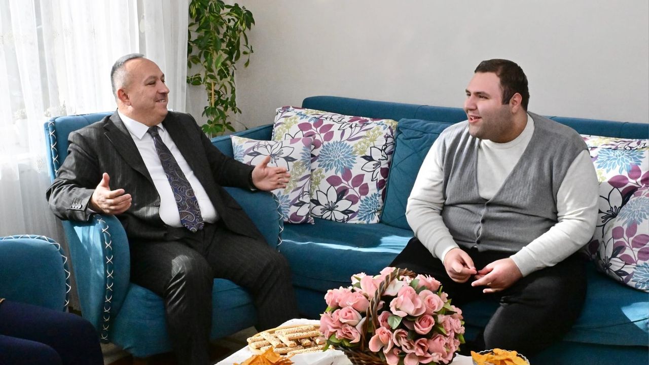 Nevşehir Valisi Ali Fidan, Aile ve Sosyal Hizmetler İl Müdürü Mahmut Selçuk ile birlikte 3 Aralık Dünya Engelliler Günü kapsamında Bahçelievler Mahallesi’nde yaşayan engelli vatandaş Umut Küçükece’yi evinde ziyaret etti.
