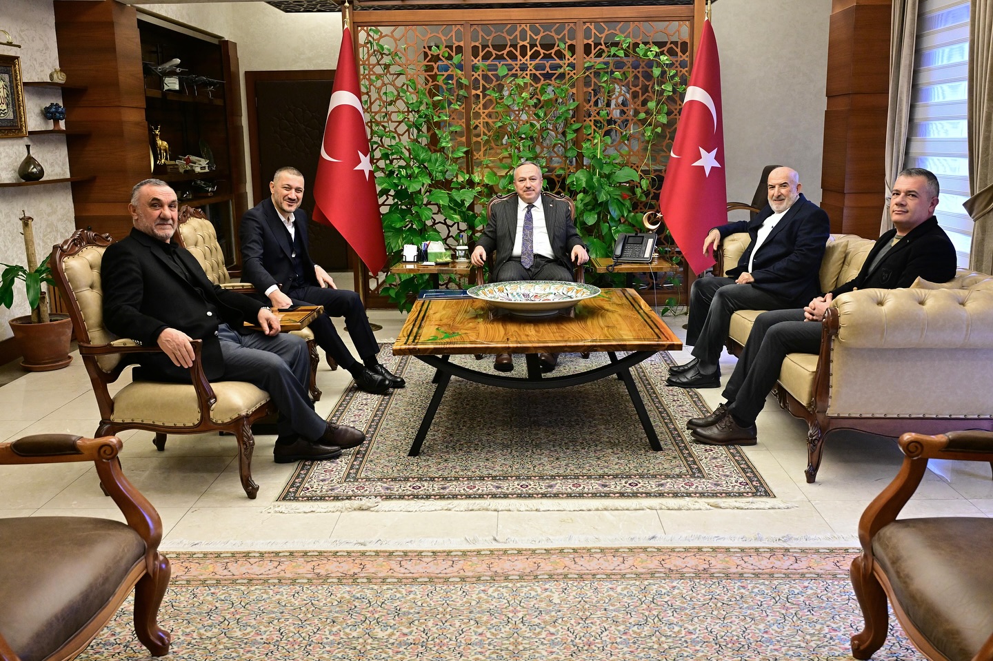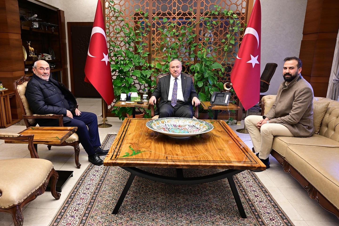 Vali Fidan, AK Parti 25., 26. ve 27. Dönem Nevşehir Milletvekili Mustafa Açıkgöz, Mahmut Sami Ramazanoğlu Vakfı Başkanı Hüseyin Daldiken ile beraberindeki Aydın Başol ve Cemil Usta’yı makamında ağırladı. Ziyarette karşılıklı fikir alışverişinde bulunulurken, yürütülen çalışmalar üzerine sohbet edildi.