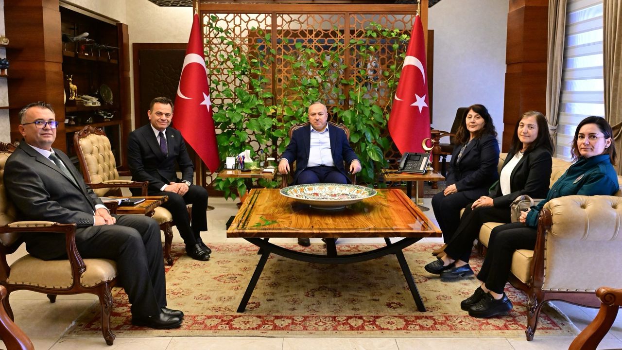 Nevşehir Valisi Ali Fidan, Orta Anadolu Gümrük ve Dış Ticaret Bölge Müdürü Şenol Alkan ve beraberindeki heyeti makamında kabul etti.