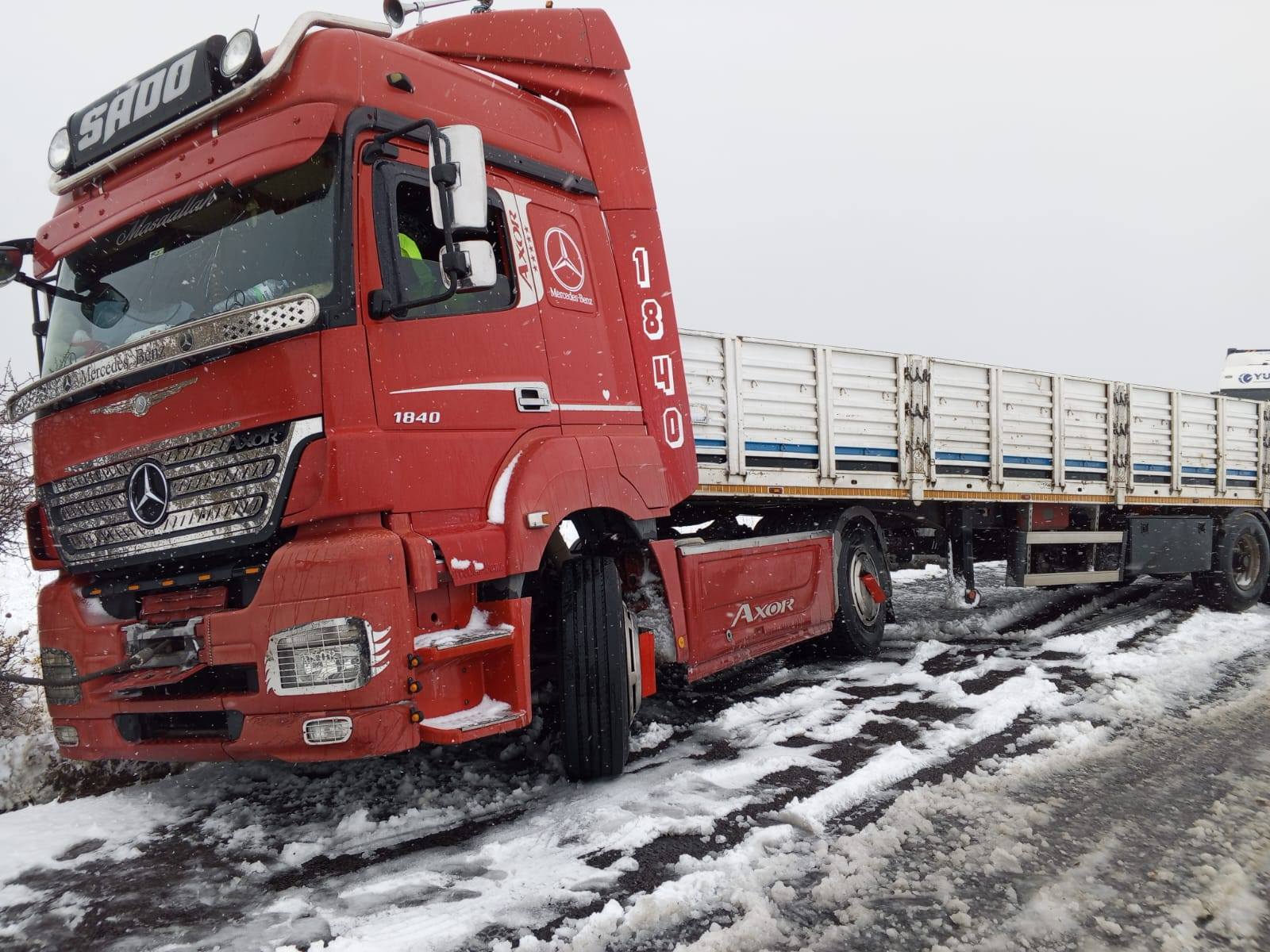 Nevşehir’in Ürgüp ilçesine bağlı Başdere Topuz Mevkii’nde bir tır, yol üzerinde kayarak trafikte aksamalara neden oldu. Bölgedeki sürücüler ve vatandaşlar kısa süreli panik yaşarken, durum Özel İdare ekiplerine bildirildi.