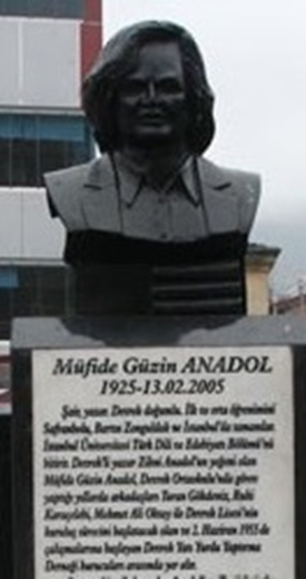 Yazar İbrahim Tığ’ın çabalarıyla Devrek Belediyesi tarafından Devrek’e büstü yaptırılarak adı da bir sokağa verilmiştir. Müfide Güzin Anadol’un unutulmaya yüz tutan eserlerini bulup çıkartan ve O’nun adını Devrek’te yaşatan yazar arkadaşım İbrahim Tığ’a ne kadar teşekkür etsek az kalır.